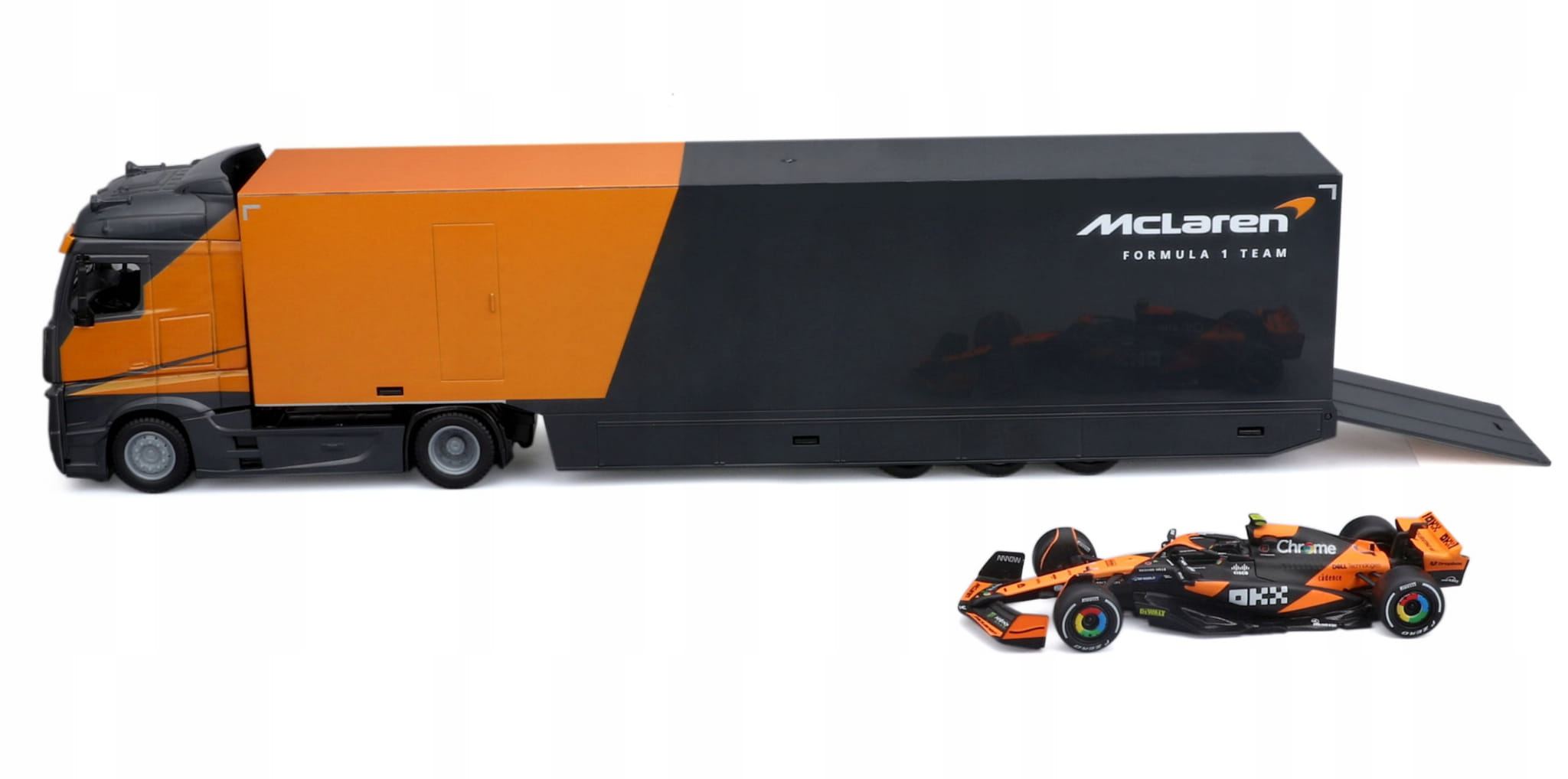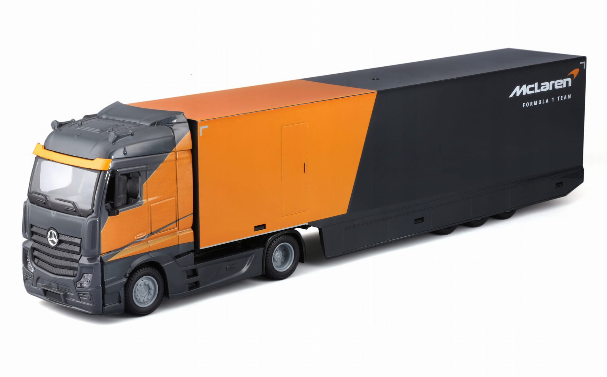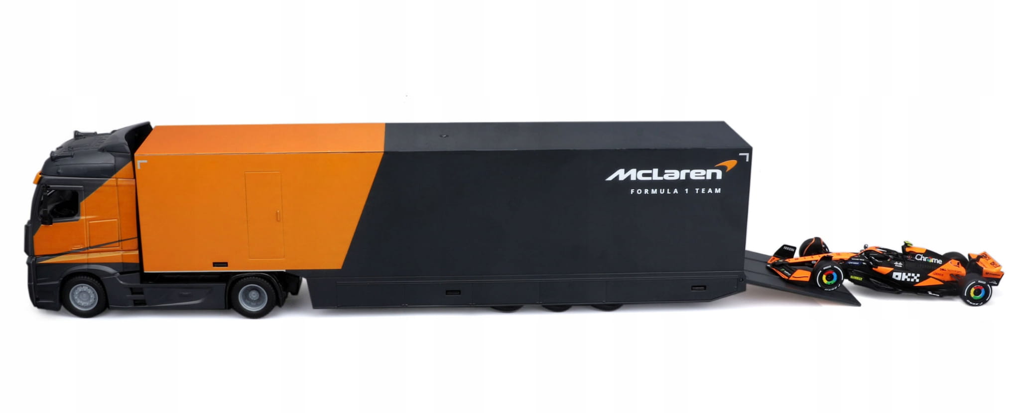 BBURAGO MERCEDES ACTROS CIĘŻARÓWKA Z NACZEPĄ + BOLID F1 MCL38 NORRIS 1:43