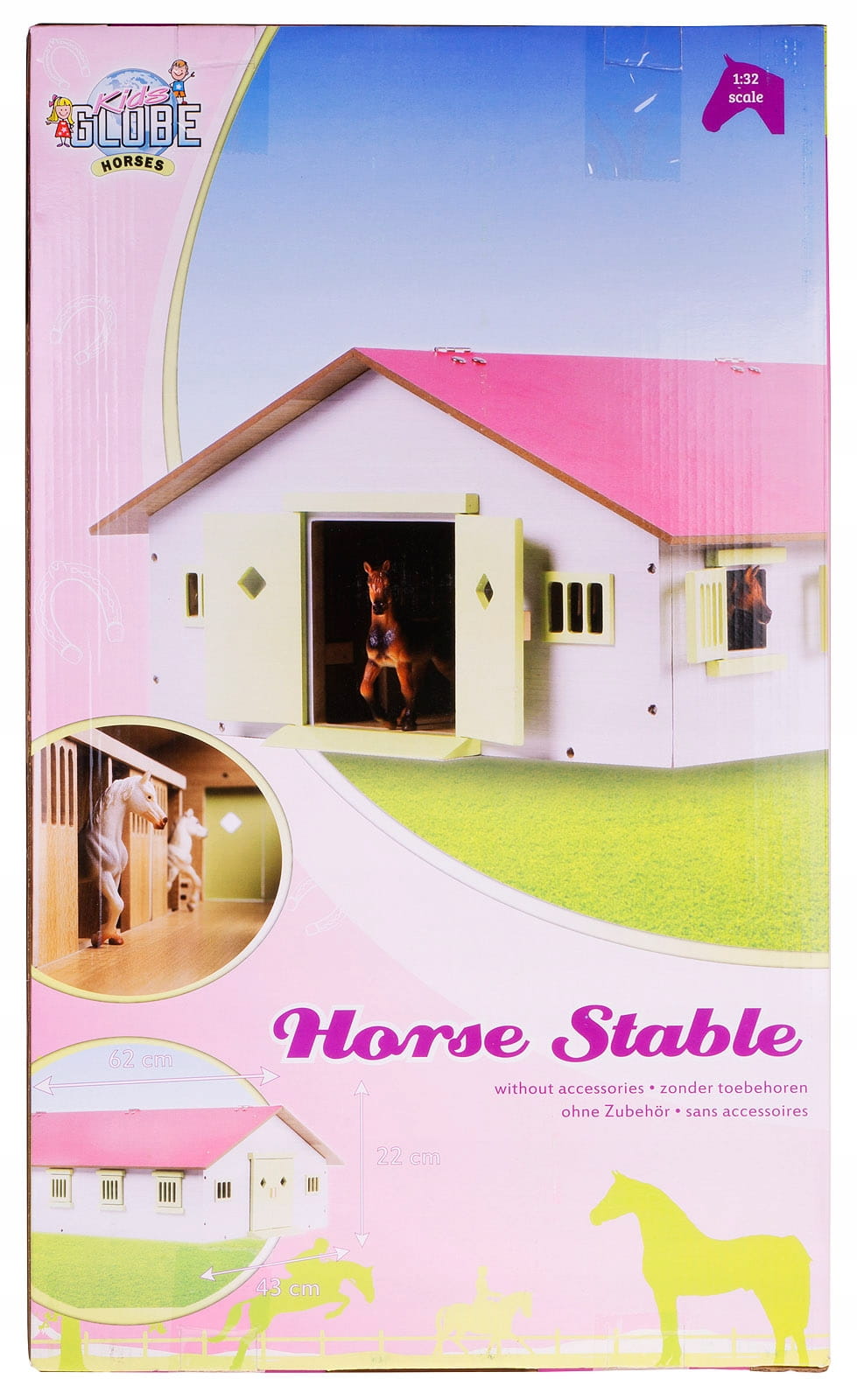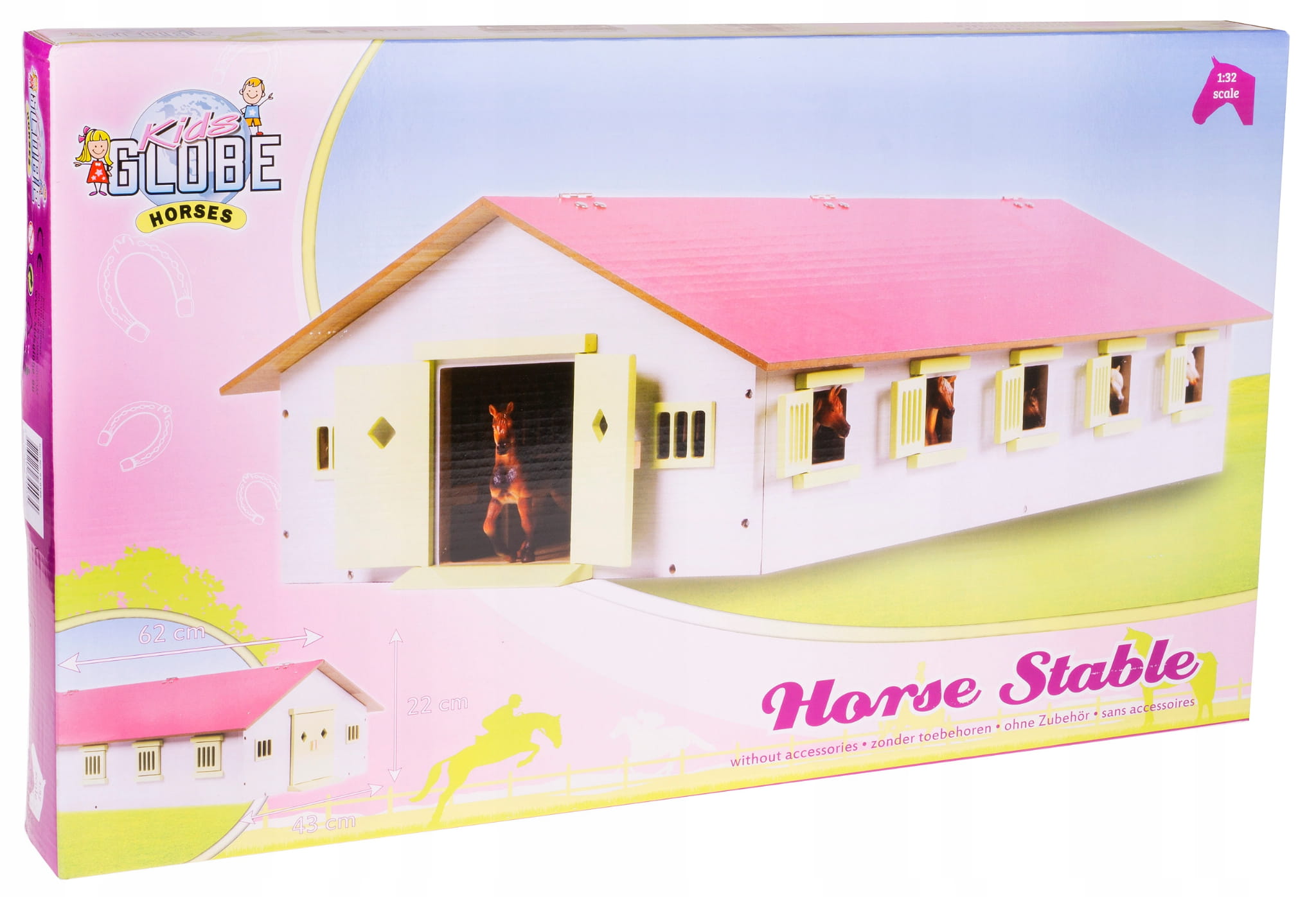 DREWNIANA STAJNIA DLA KONI 9 BOKSÓW I POMIESZCZENIE GOSPODARCZE 1:32 HORSE STABLE KIDS GLOBE RÓŻOWY 610188