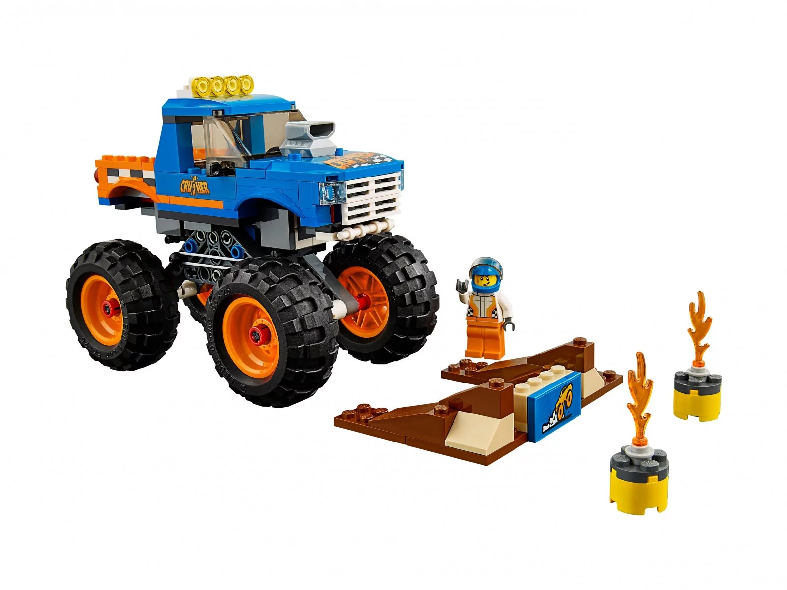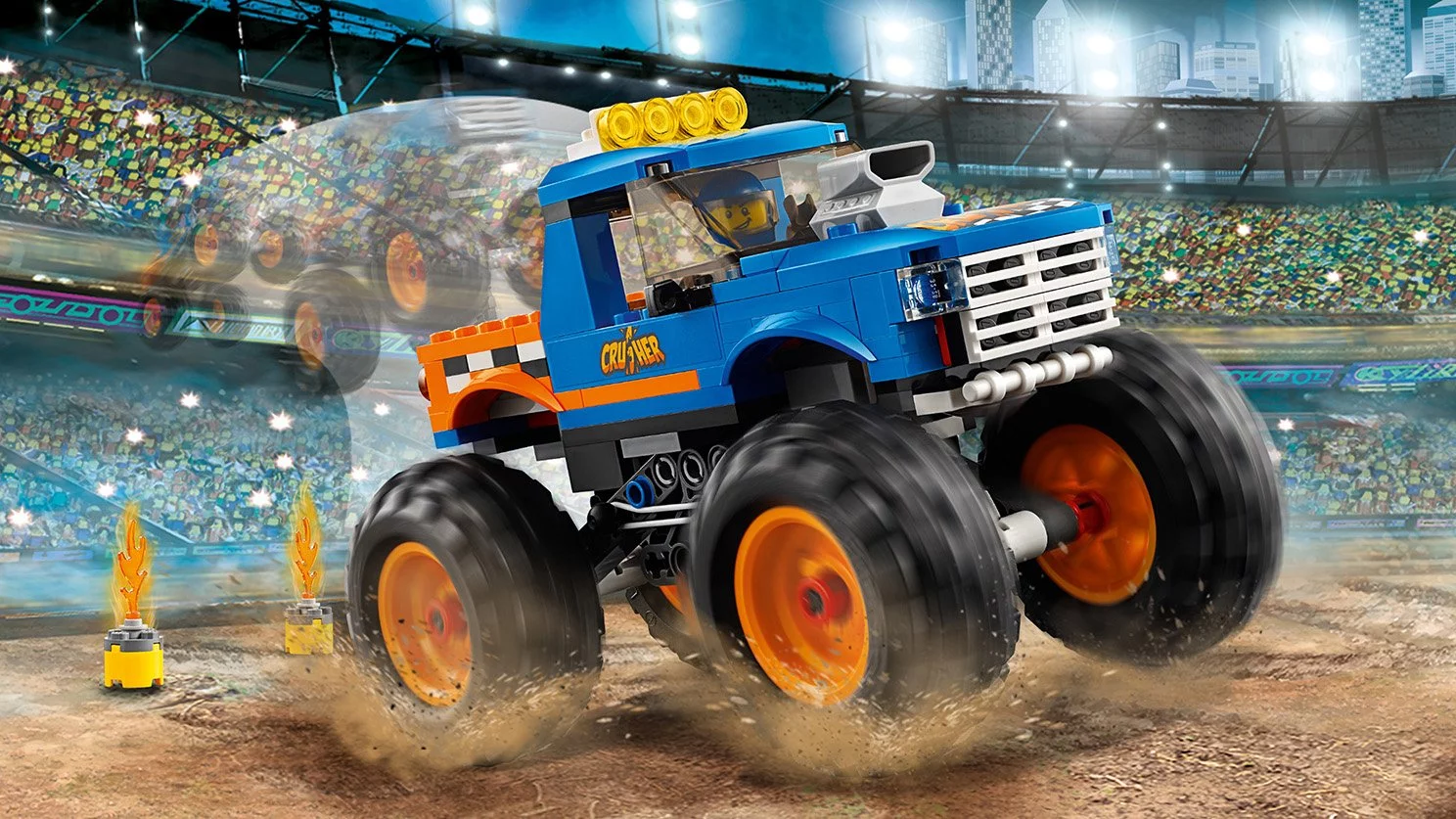 Wsiądź za kierownicę kolorowego monster trucka z zestawu LEGO® City i wykonaj ewolucje, które zaprzeczają grawitacji! Model ma wielkie koła, wlot powietrza i działające zawieszenie, a w pudełku znajdziesz poza nim rampę z klocków i 2 płonące baryłki z elementami ognia. W tym efektownym zestawie dla dzieci jest też minifigurka.