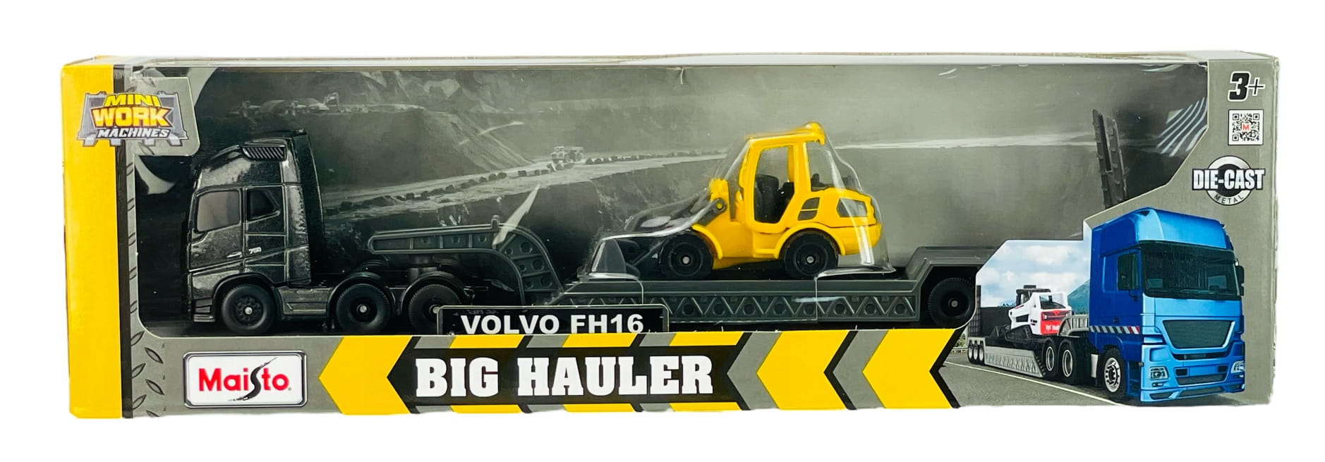 MARKOWY MODEL CIĘŻARÓWKA VOLVO FH16 + VOLVO L25H SPYCHACZ FIRMY MAISTO