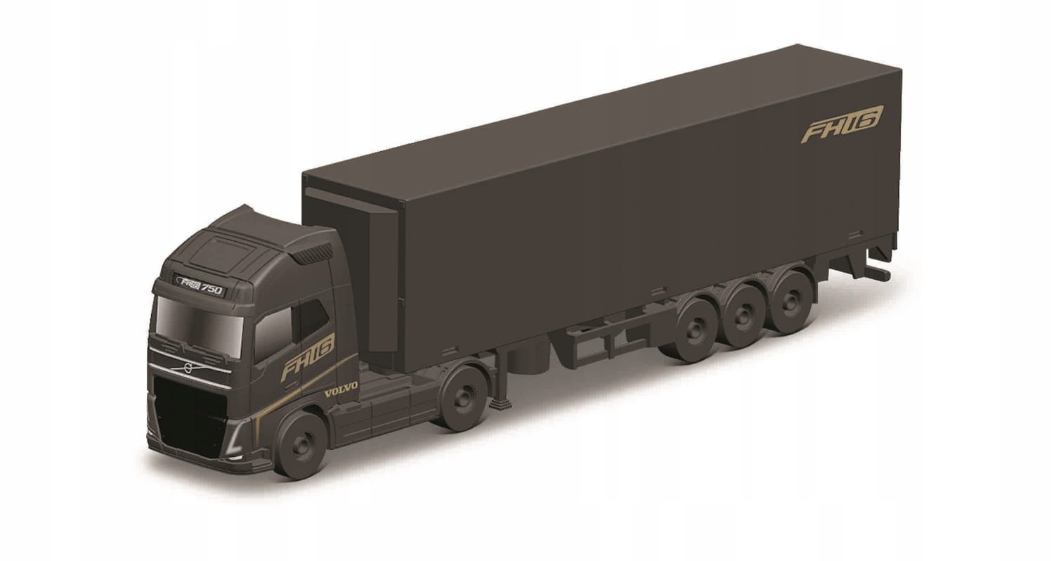 Miniaturowa ciężarówka z przyczepą Volvo FH16 to doskonała zabawka dla wszystkich dzieci uwielbiających zabawę pojazdami. Ciężarówka z pewnością zachwyci najmłodszych bardzo precyzyjnym i realistycznym wykonaniem z mnóstwem detali. Została wyposażona w obrotowe koła, które pozwalają na poruszanie się po dowolnie wybranej powierzchni. Ponadto posiada bardzo długą przyczepę, na której widnieje napis FH16. Przyczepa umożliwia dziecku przewożenie różnych przedmiotów w jej wnętrzu. Produkt z powodzeniem posłuży jako klasyczna zabawka, ale również jako model kolekcjonerski. Zabawka została umieszczona w opakowaniu z okienkiem.