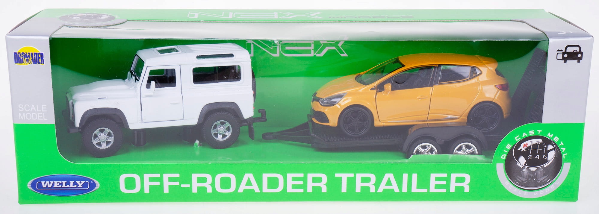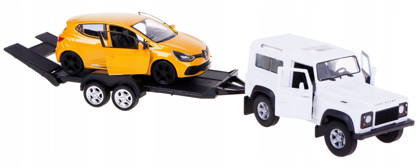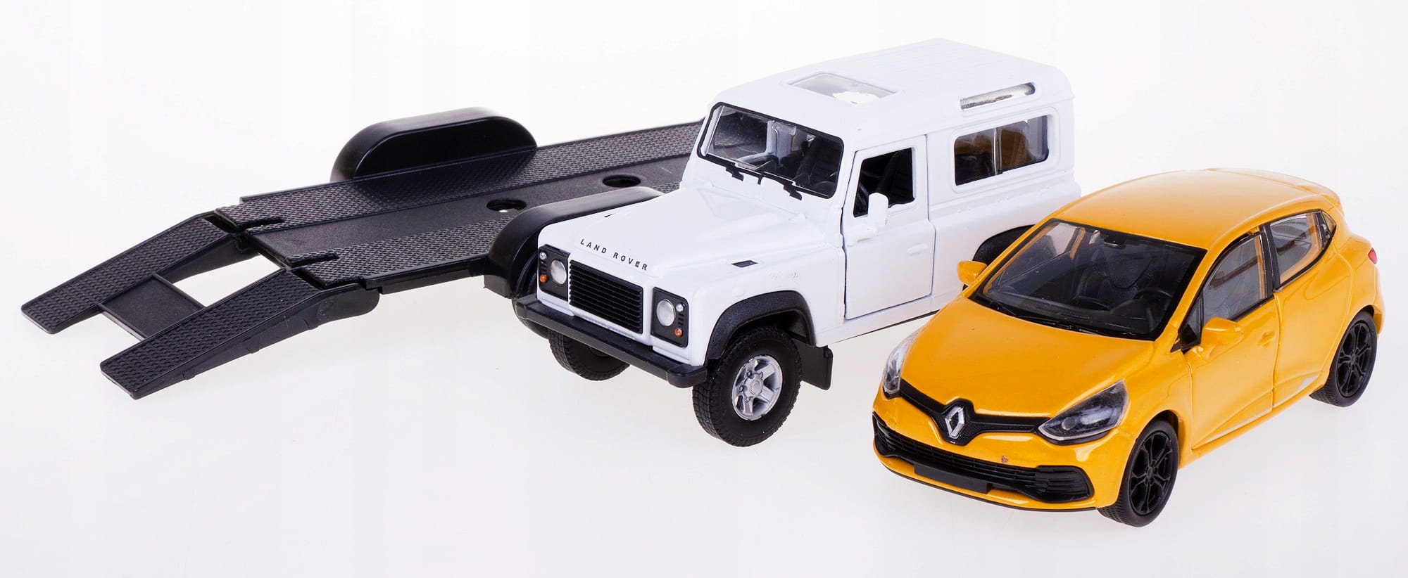 MODEL WELLY LAND ROVER DEFENDER + RENAULT CLIO RS + LAWETA 1:34