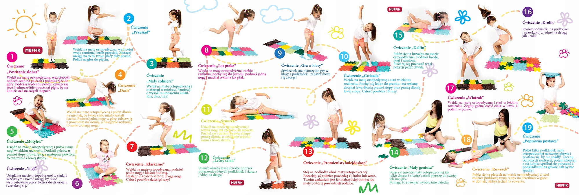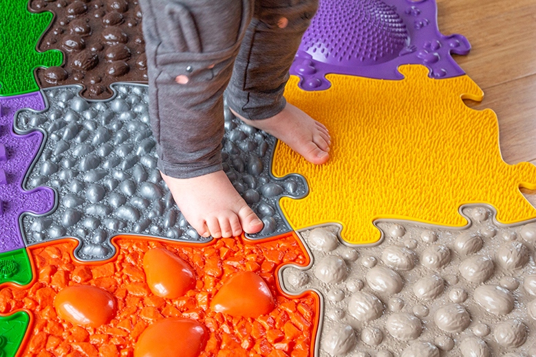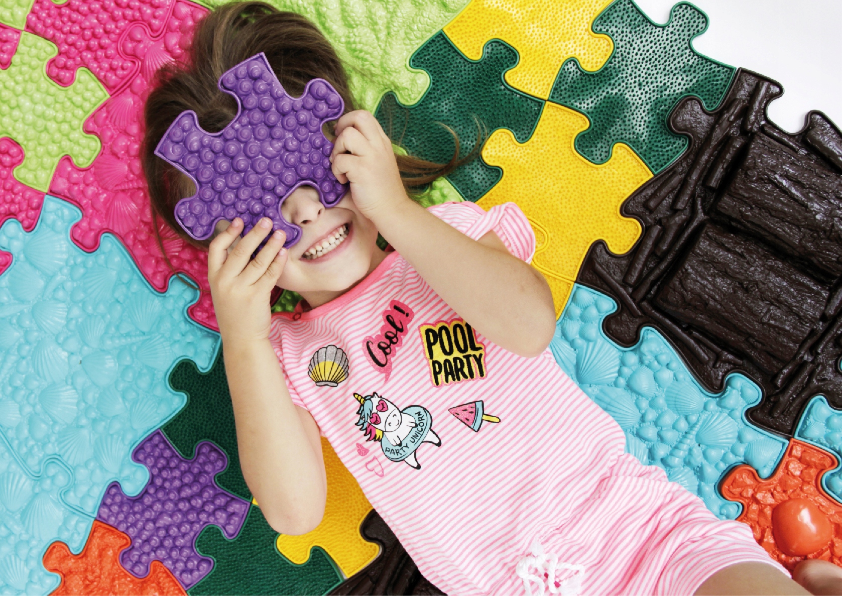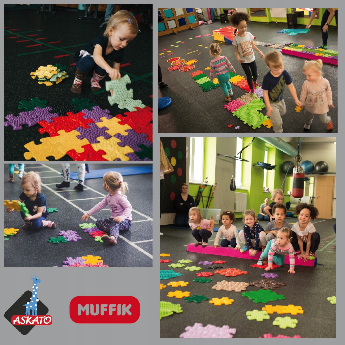 Mata sensoryczna od Askato, która okaże się niezwykle pomocna przy terapiach związanych z zaburzeniami integracji sensorycznej lub rehabilitacji. Stworzona po to, aby wspierać rozwój maluszka. Całość składa się z 11 elementów, a każdy z nich posiada inną strukturę, twardą, szorstką lub miękką. Pozwolą one wyćwiczyć odpowiednią równowagę oraz stabilność. Dzięki ćwiczeniom z sensorycznymi matami, dziecko będzie miało okazje wzmocnić swoje mięśnie oraz kostki, które odgrywają duża rolę w prawidłowej postawie. Elementy można łączyć na różne sposobu, co pozwoli na wiele wariantów wspaniałej zabawy.
