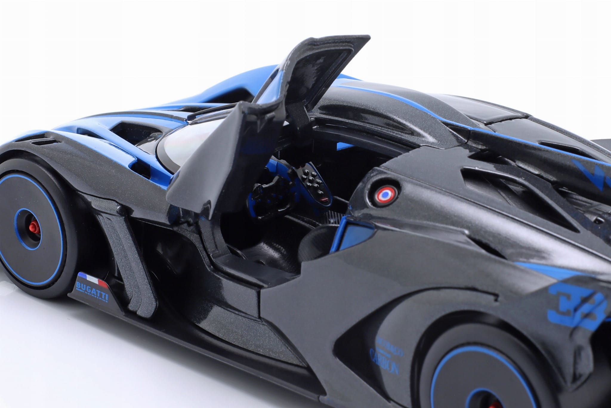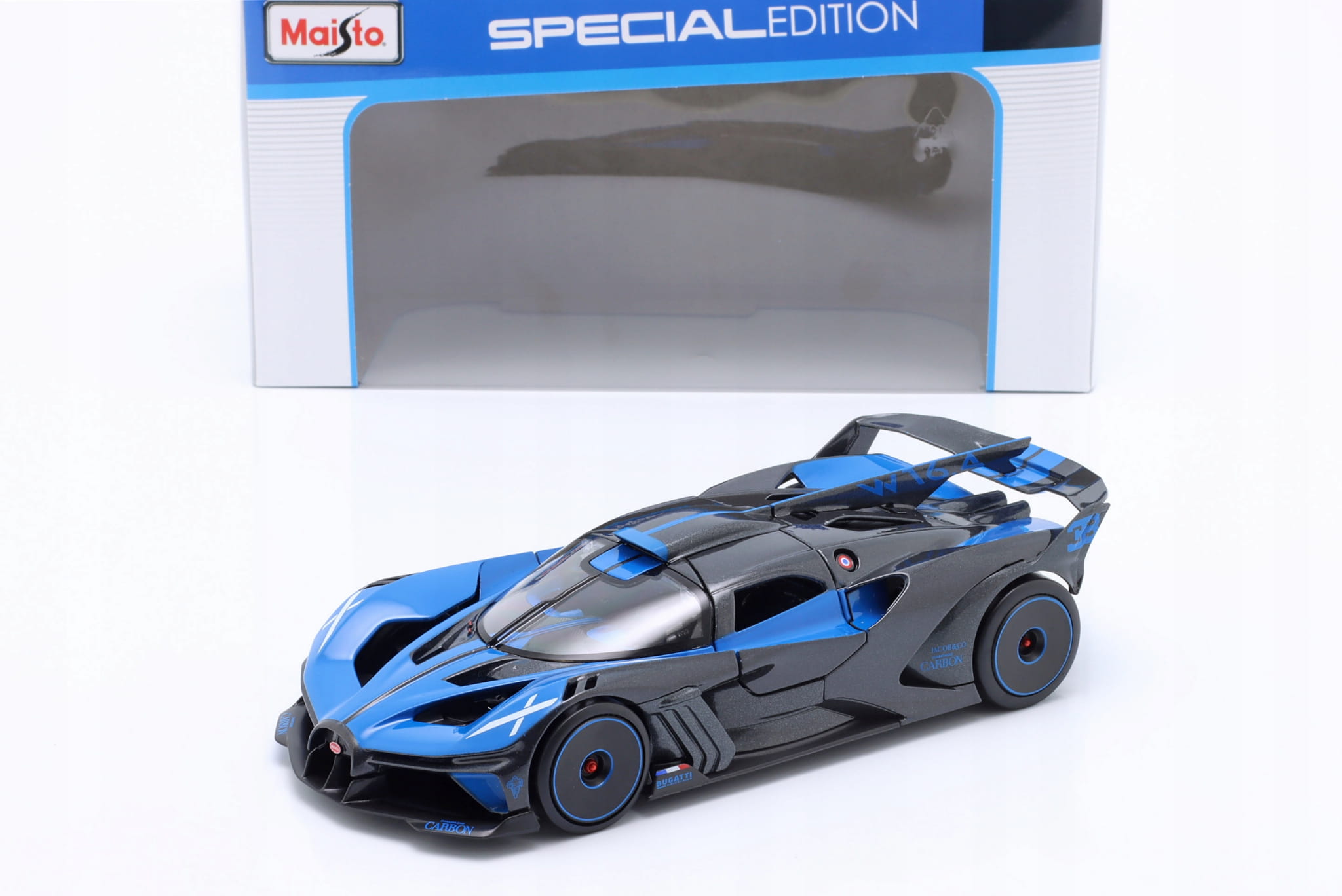 Kolekcjonerski metalowy model samochodu Bugatti Bolide W16.4 W16 8.0 Four-Turbo 1850hp 500km/h z 2020 roku w skali 1/24 wyprodukowany przez znaną, cenioną i renomowaną firmę Maisto.
