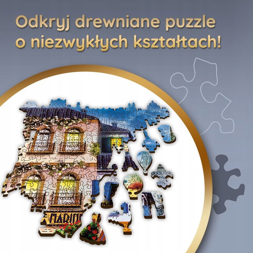 To nie są zwykłe puzzle! Takich kształtów jeszcze nie widziałeś. Poza tym, że puzzle nie mają regularnych brzegów, to w układance znajdziecie 100 tematycznych figurek, których dopasowanie do całości to nie lada wyczyn! Drewniane puzzle o nieregularnych kształtach to idealna alternatywa dla tradycyjnych układanek o klasycznej formie.
