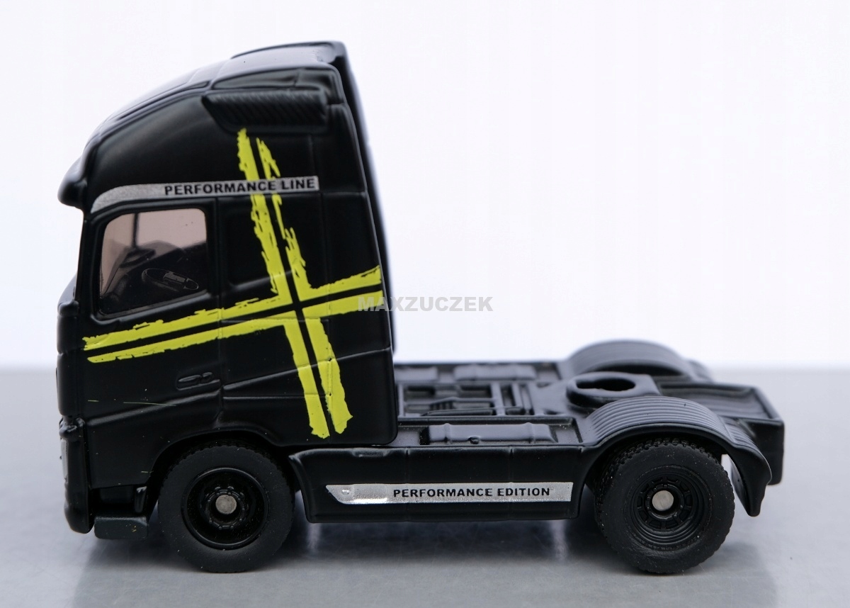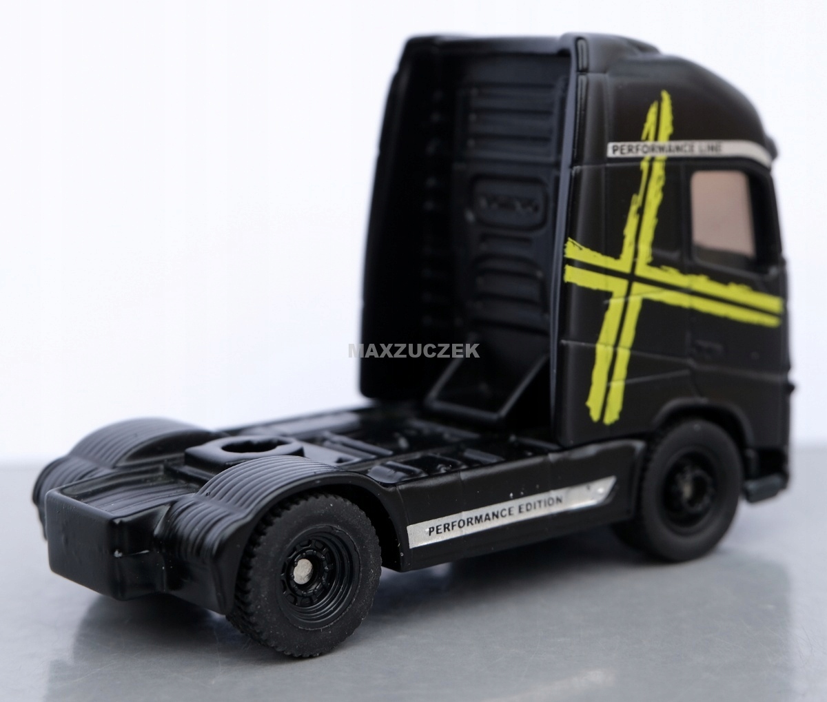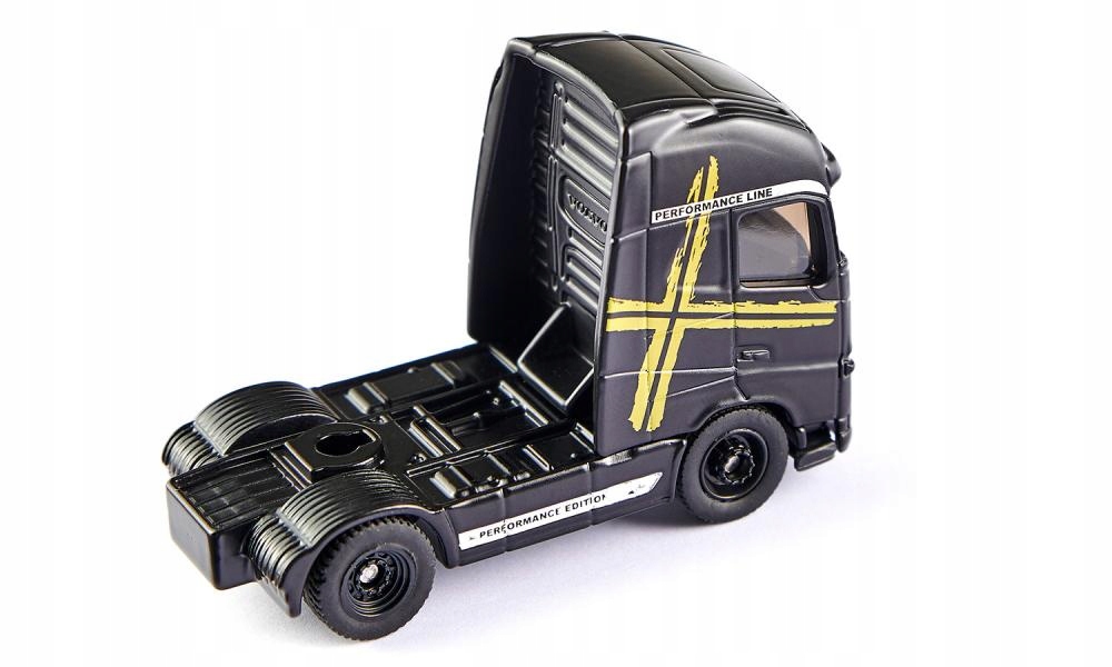 Volvo FH16 swoim charakterystycznym czarnym lakierem demonstruje swoją moc. Firma siku dostarcza ten 2-osiowy ciągnik na gumowanych oponach z felgami typowymi dla ciężarówek. Za pomocą zaczepu może ciągnąć wszystkie naczepy siku w skali 1:87.
