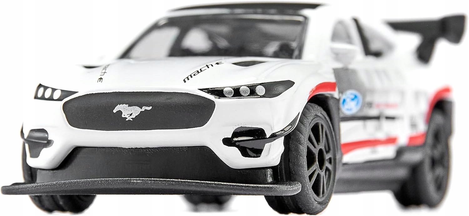 Panie i panowie, oto absolutne arcydzieło ewolucji sportów samochodowych: Ford Mustang Mach-E 1400. Trudno uwierzyć, że ten stylowy samochód wyścigowy z ogromnym tylnym spoilerem i mocą 1500 KM pod maską to pojazd elektryczny! 3, 2, 1, START! E-Mustang rozpędza się bez wysiłku do maksymalnej prędkością i w mgnieniu oka zostawia w tyle konkurencję. Sportowe felgi z gumowanymi oponami zapewniają optymalną przyczepność nawet na ostrych zakrętach. Metalowa karoseria tego wyścigowego samochodu zachwyca również wyścigowym wzornictwem i starannie wykonanym nadrukiem: świecąca biel z wielobarwnymi akcentami kolorystycznymi i logo – plus potężnie wyglądające czarne felgi. Marzenie wszystkich fanów tych legendarnych Amerykanów. Poza tym ta wierna replika oryginalnego samochodu wyścigowego jest unikatem.