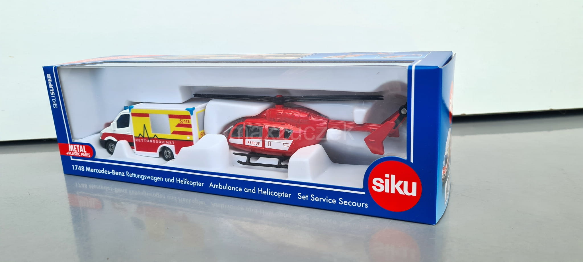 SIKU 1748 MERCEDES-BENZ AMBULANS I HELIKOPTER RATUNKOWY
