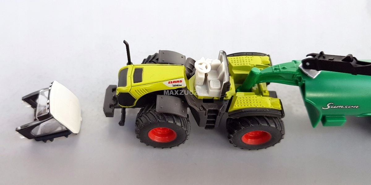 Kolejny traktor w kolekcji SIKU. Tym razem przedstawiamy model Class Xerion z cysterną. Istnieje możliwość odłączenia cysterny. Zdejmowana kabina. Gumowe opony zapewniają przyczepność. Model metalowy z elementami plastikowymi. Bardzo starannie wykonany z dbałością o wszelkie szczegóły.