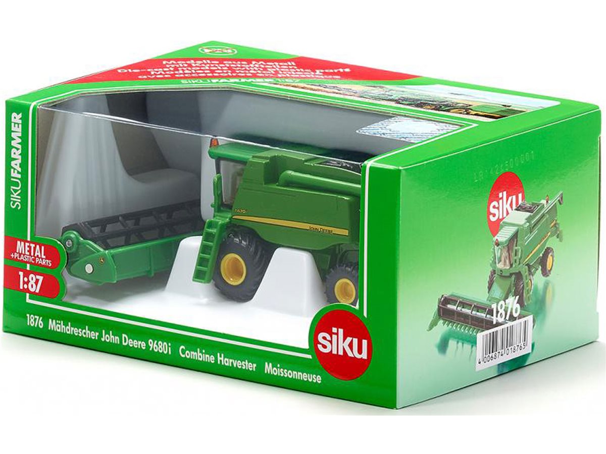 Model kombajnu John Deere 9680i wykonany jest z metalowych i plastikowych elementów w skali 1:87 z zachowaniem szczegółów pojazdu rzeczywistego. Zabawę jak na prawdziwym polu zapewnią ruchome elementy i gumowe opony umożliwiające poruszanie się po różnych powierzchniach. Model jest atrakcyjną zabawką dla najmłodszych. Może także stać się elementem ciekawej kolekcji.