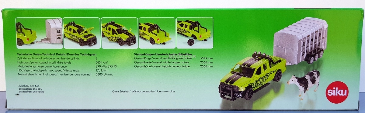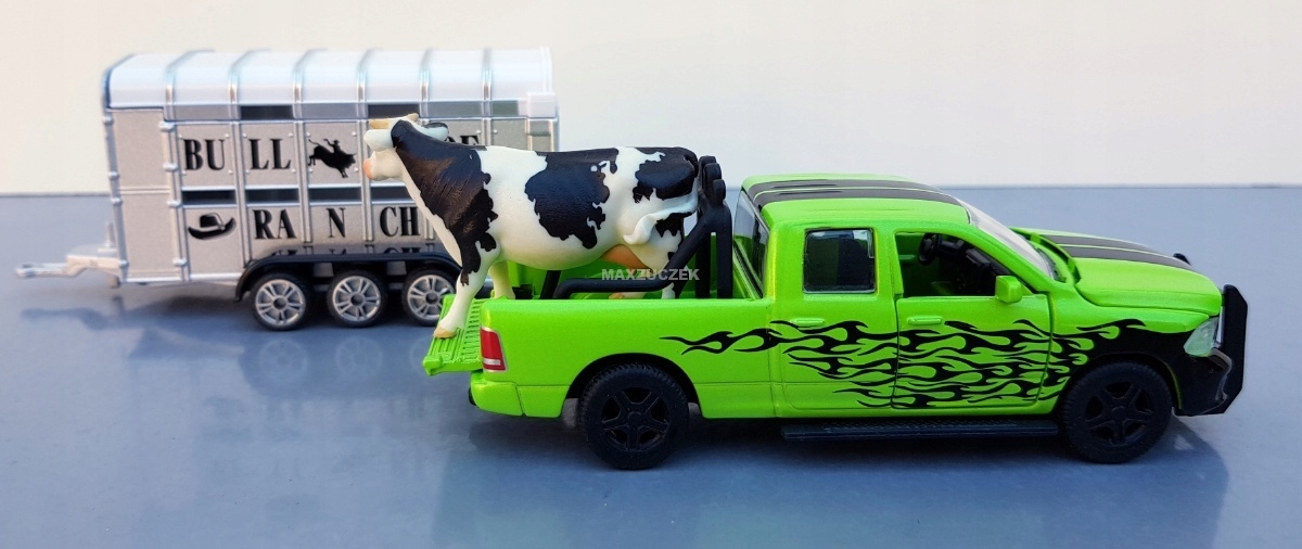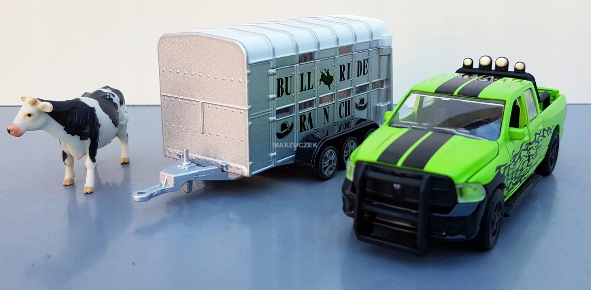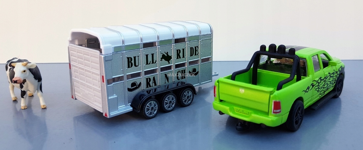 SIKU 1998 RAM 1500 z przyczepą do przewozu bydła