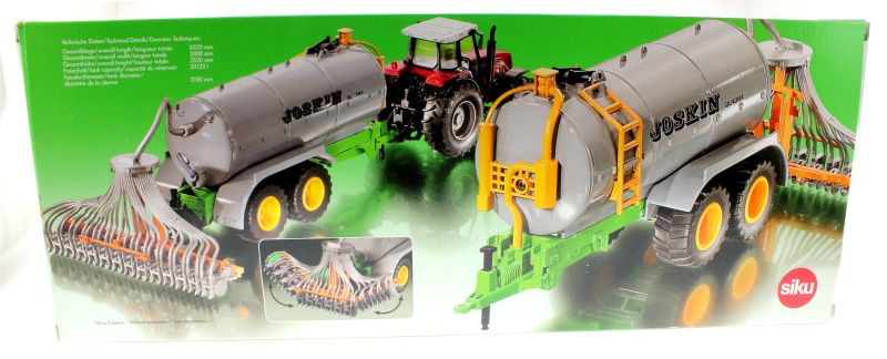 Dzięki systemowi Fasswahen Joskin firmy Siku można złożyć rozpylacz z tyłu. Podstawę można również przenosić. Opony są wykonane z pełnej gumy.