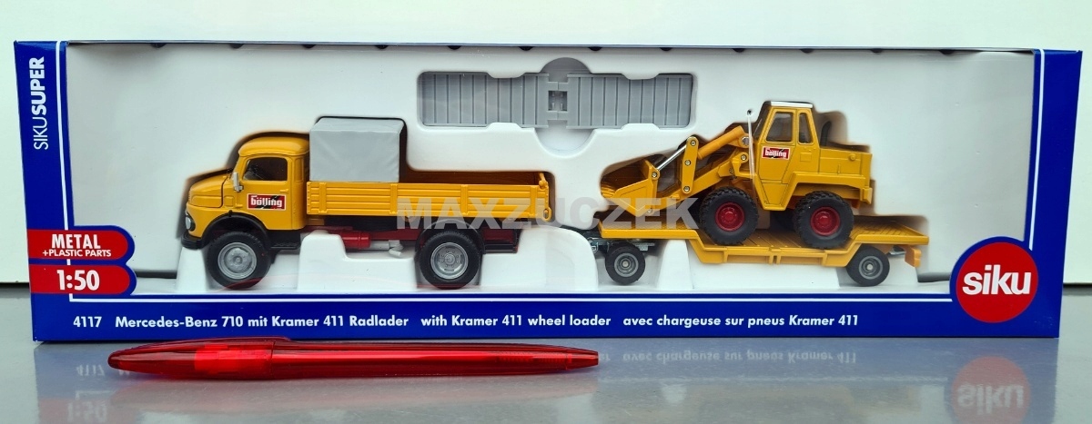 SIKU 4117 Mercedes-Benz 710 z ładowarką kołową Kramer 411 Bölling