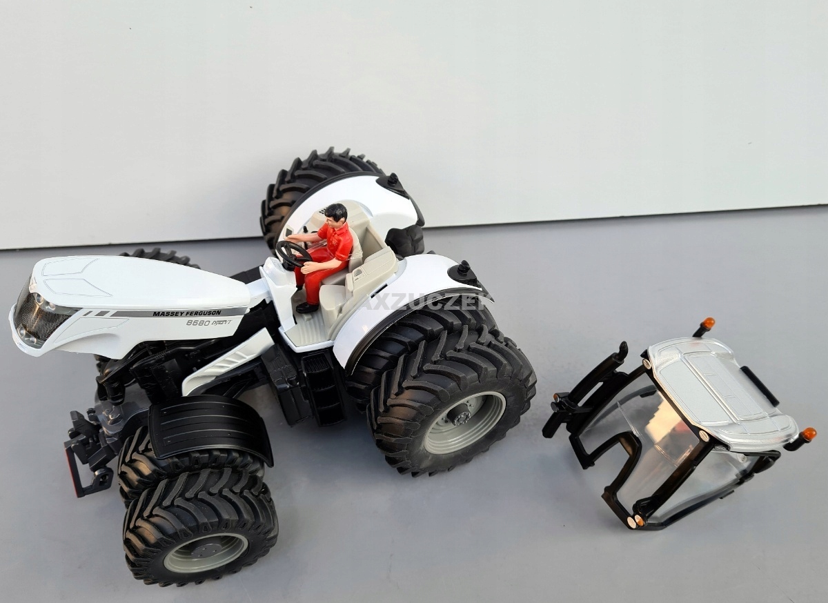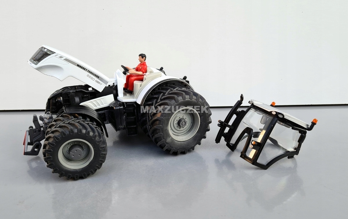 - GUMOWE OPONY, ZDEJMOWANA KABINA, PODNOSZONA MASKA, FIGURKA TRAKTORZYSTY, PRZEDNIA OŚ SKRĘTNA