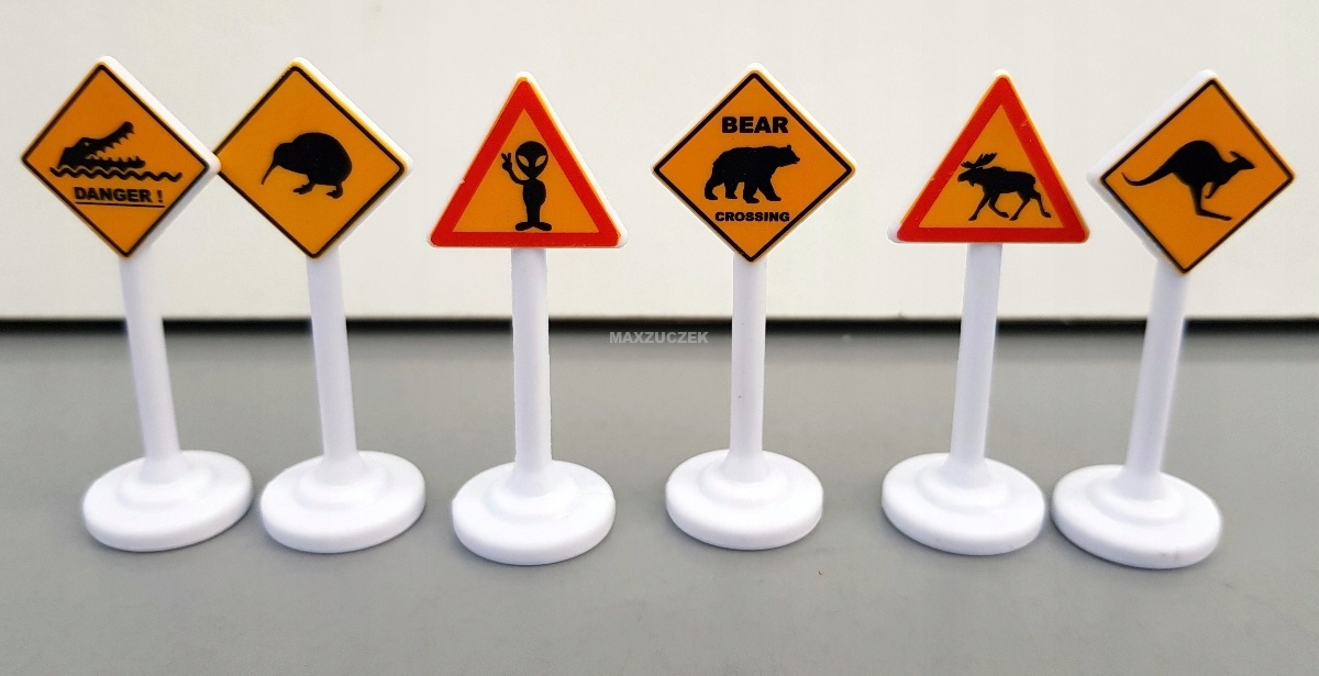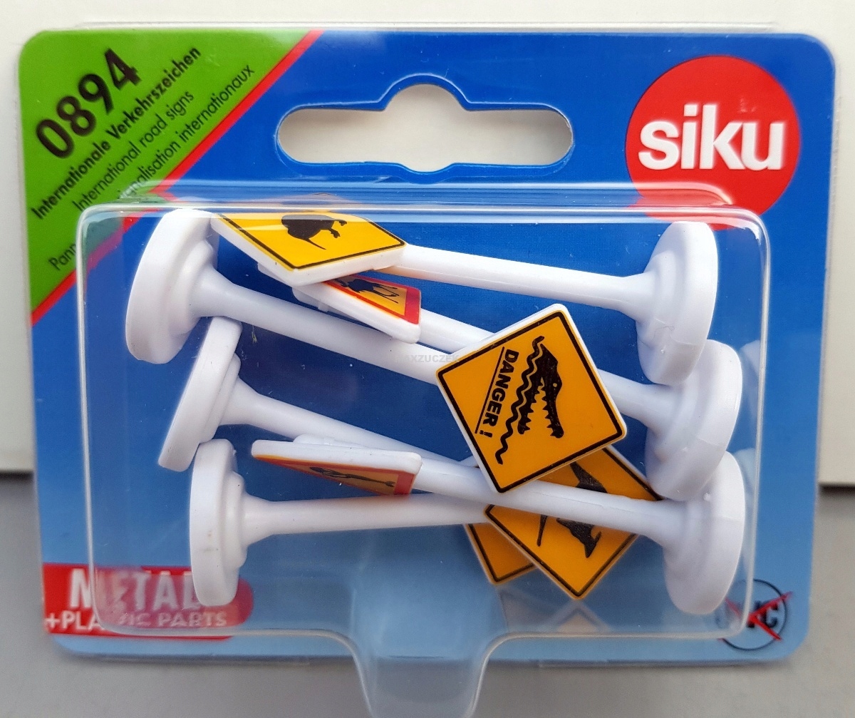 W naszym kraju znaki drogowe w regionach wiejskich ostrzegają przed bydłem lub, na obszarach zalesionych, dziką zwierzyną. Pojazdy SIKU są jednak wykorzystywane na całym świecie. Oczywiście w innych częściach świata umieszczone na lub przy drodze znaki drogowe ostrzegają przed innymi zwierzętami: niedźwiedziami, łosiami, kangurami, ptakami kiwi, krokodylami. A kiedy ląduje Ufo, istoty pozaziemskie witają się serdecznie. Znaki, które są produkowane z wysokiej jakości tworzywa sztucznego w sprawdzonej jakości SIKU, są wyjątkowo wytrzymałe i stabilne. Dzięki międzynarodowym znakom ostrzegawczym pojazdy SIKU i SIKUWORLD mogą jeździć w obcych krajach i na odległych kontynentach.