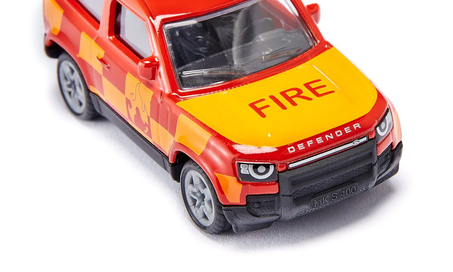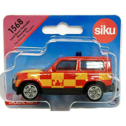 Solidny, mocny, Zie do zatrzymania! Land Rover Defender należy do najbardziej legendarnych samochodów terenowych w świecie motoryzacji – i to już od ponad 70 lat. Nic więc dziwnego, że również straż pożarna stawia na Defendera i wykorzystuje go do interwencji w trudnym terenie. Dzięki metalowej karoserii i sportowym felgom z gumowanymi bieżnikami, model Defender radzi sobie podczas zabawy nawet z wiatrem i innymi warunkami atmosferycznymi. Duży, szklany szyberdach zapewnia dobrą widoczność wnętrza pojazdu, które również w małej skali jest wierne oryginałowi i wykonane z wytrzymałego tworzywa sztucznego. Charakterystyczna czerwień strażacka z żółtymi akcentami i niebieska belka sygnalizacyjna na dachu od razu informują: ten Defender jest zawsze na służbie i stale gotowy do małych lub dużych akcji ratowniczych w terenie. Typowo dla siku, przednie i tylne światła są nadrukowane zgodnie z oryginałem. Poza tym wóz strażacki Land Rover Defender jest standardowo wyposażony w srebrne felgi oraz zintegrowany sprzęg przyczepowy, dzięki czemu można go łączyć z różnymi modelami przyczep siku.