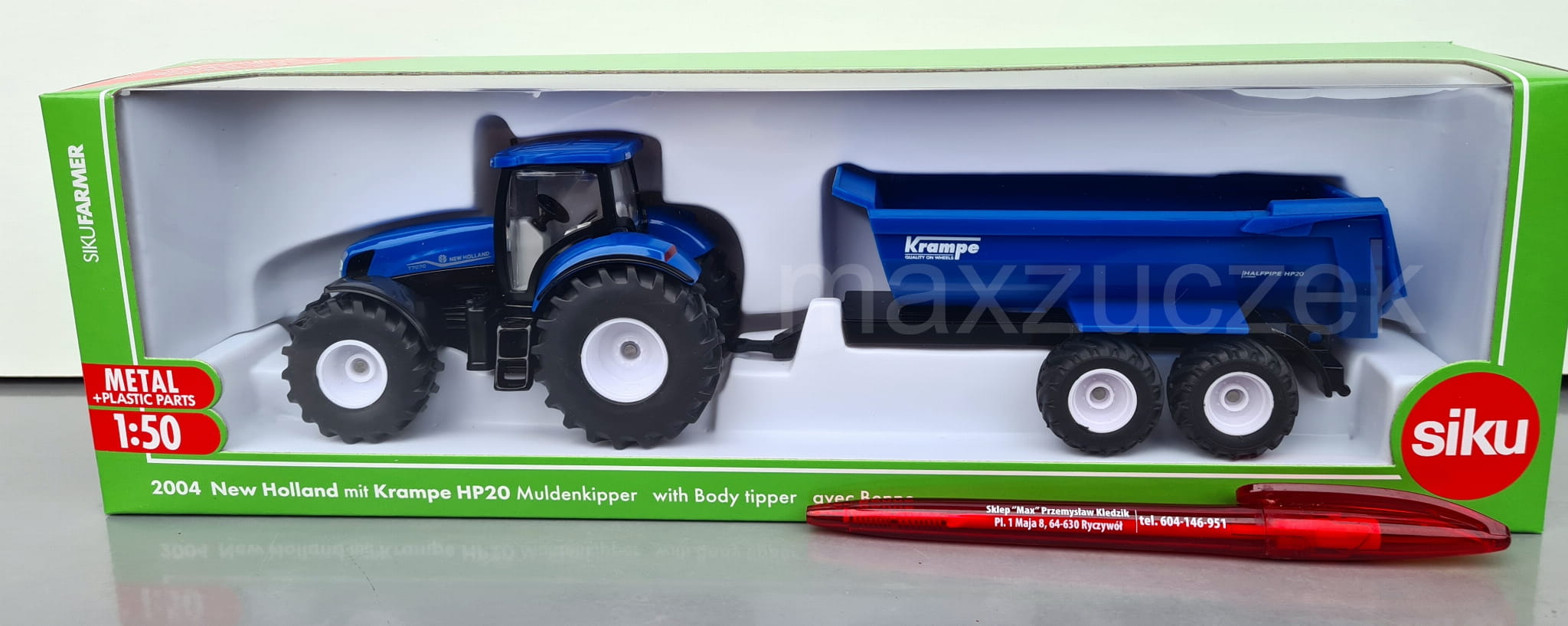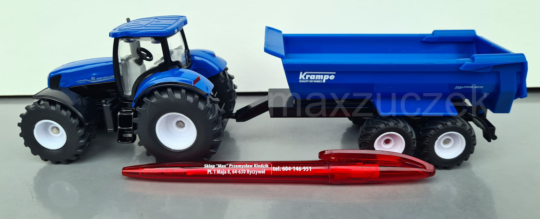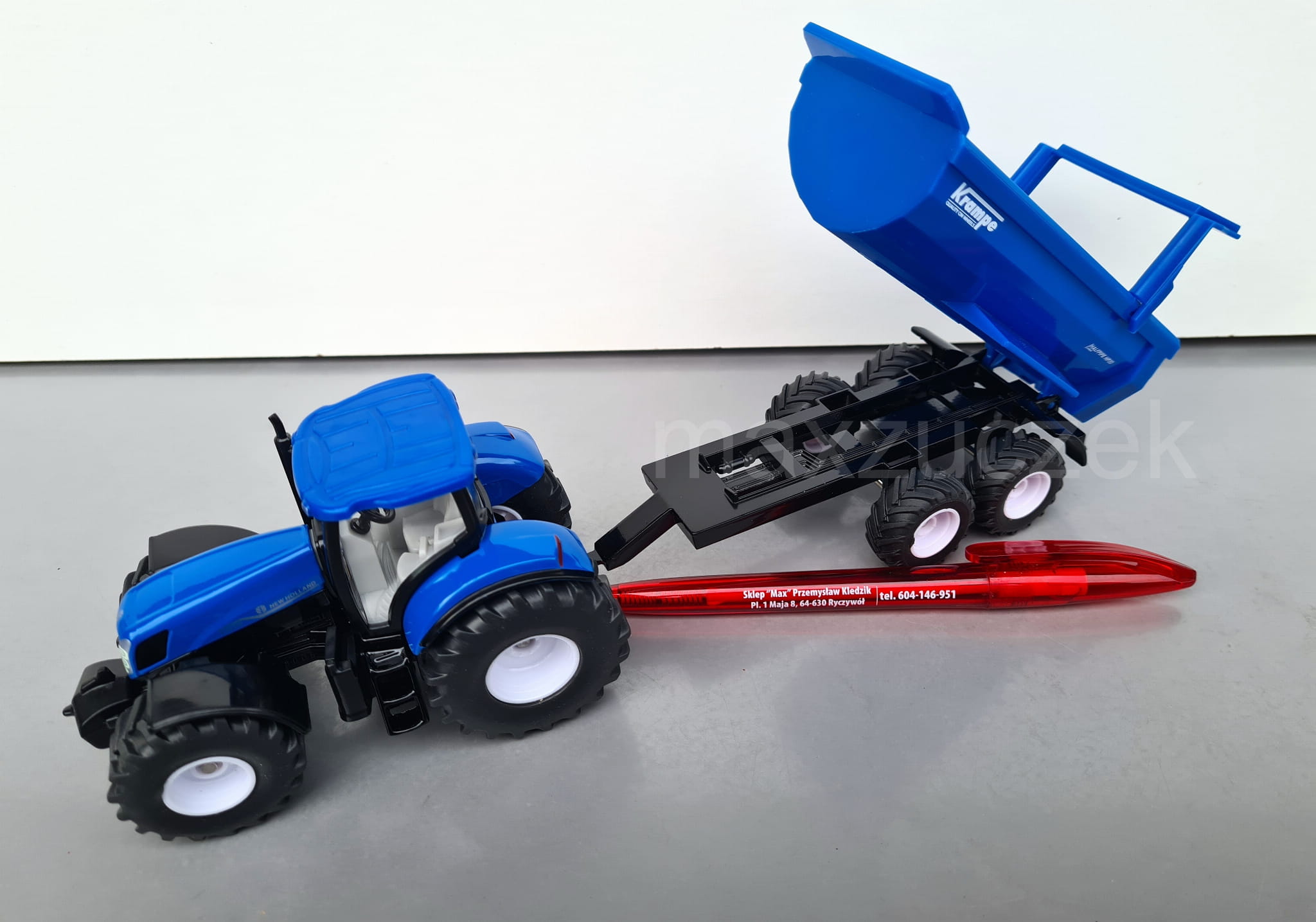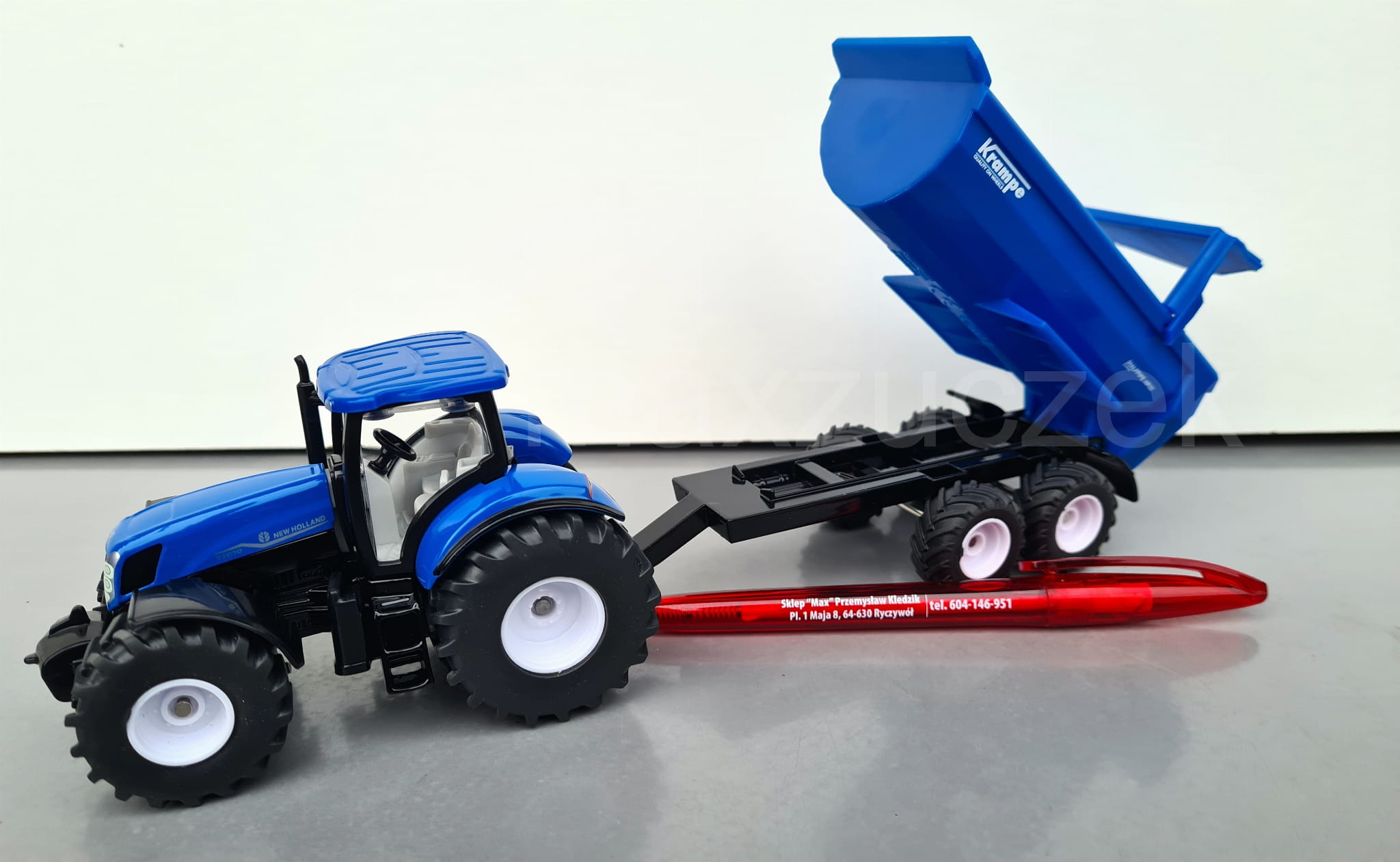 Siku 2004 Traktor New Holland z niebieską przyczepą Krampe 1:50