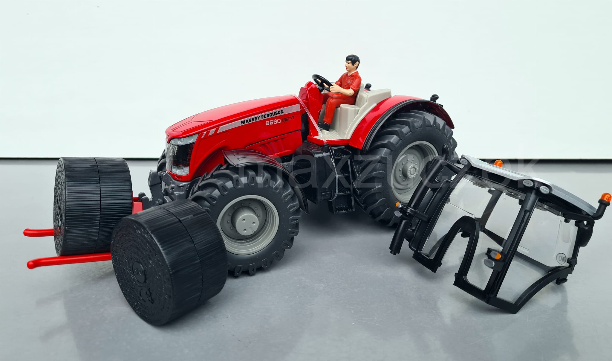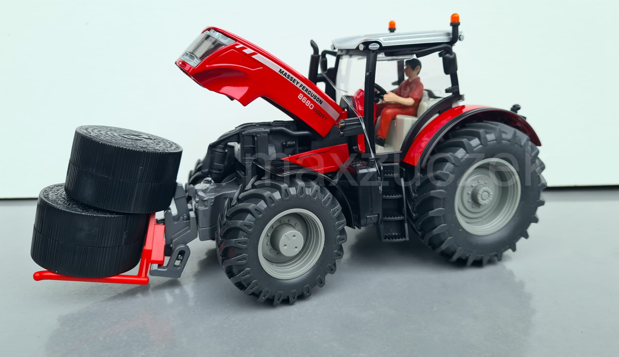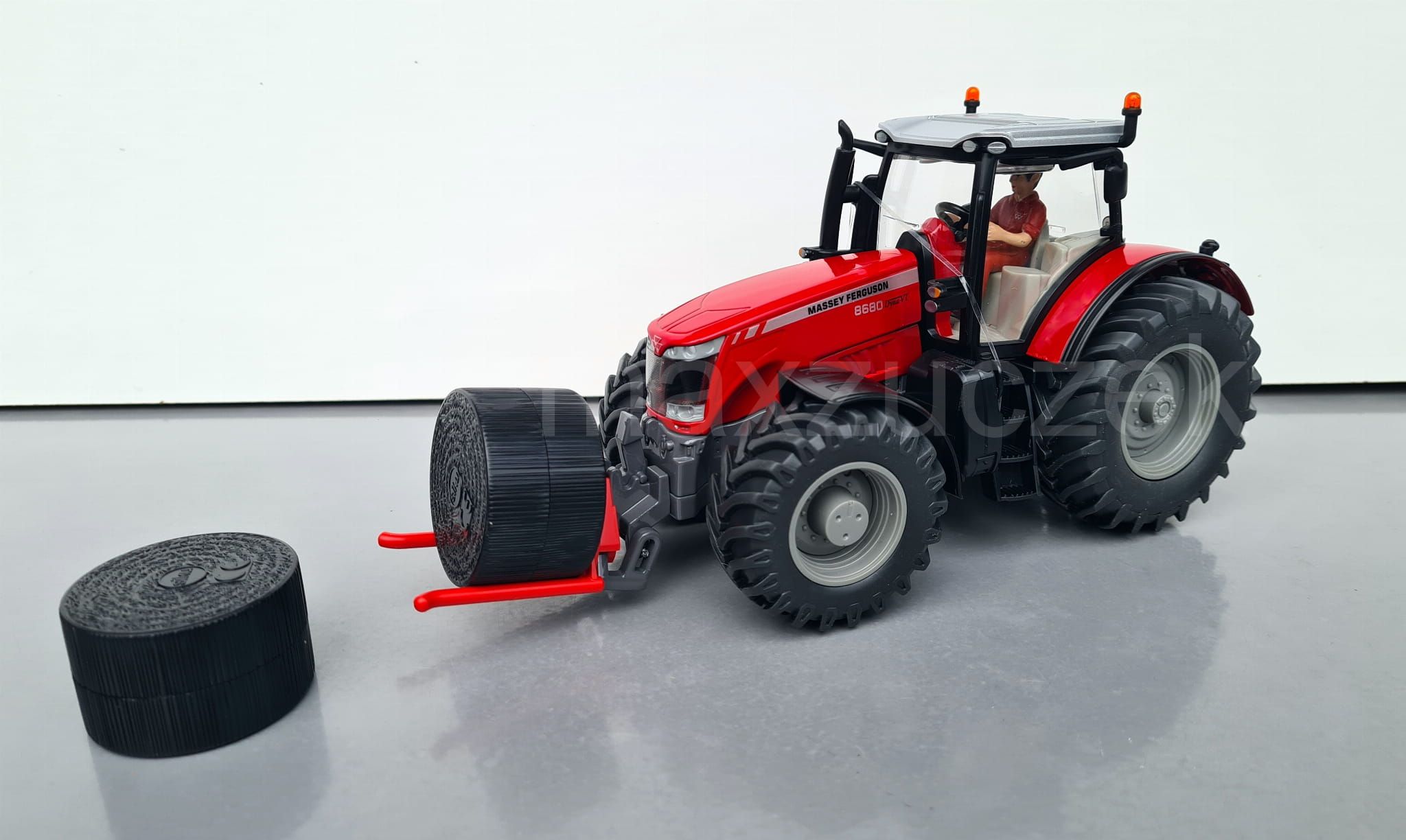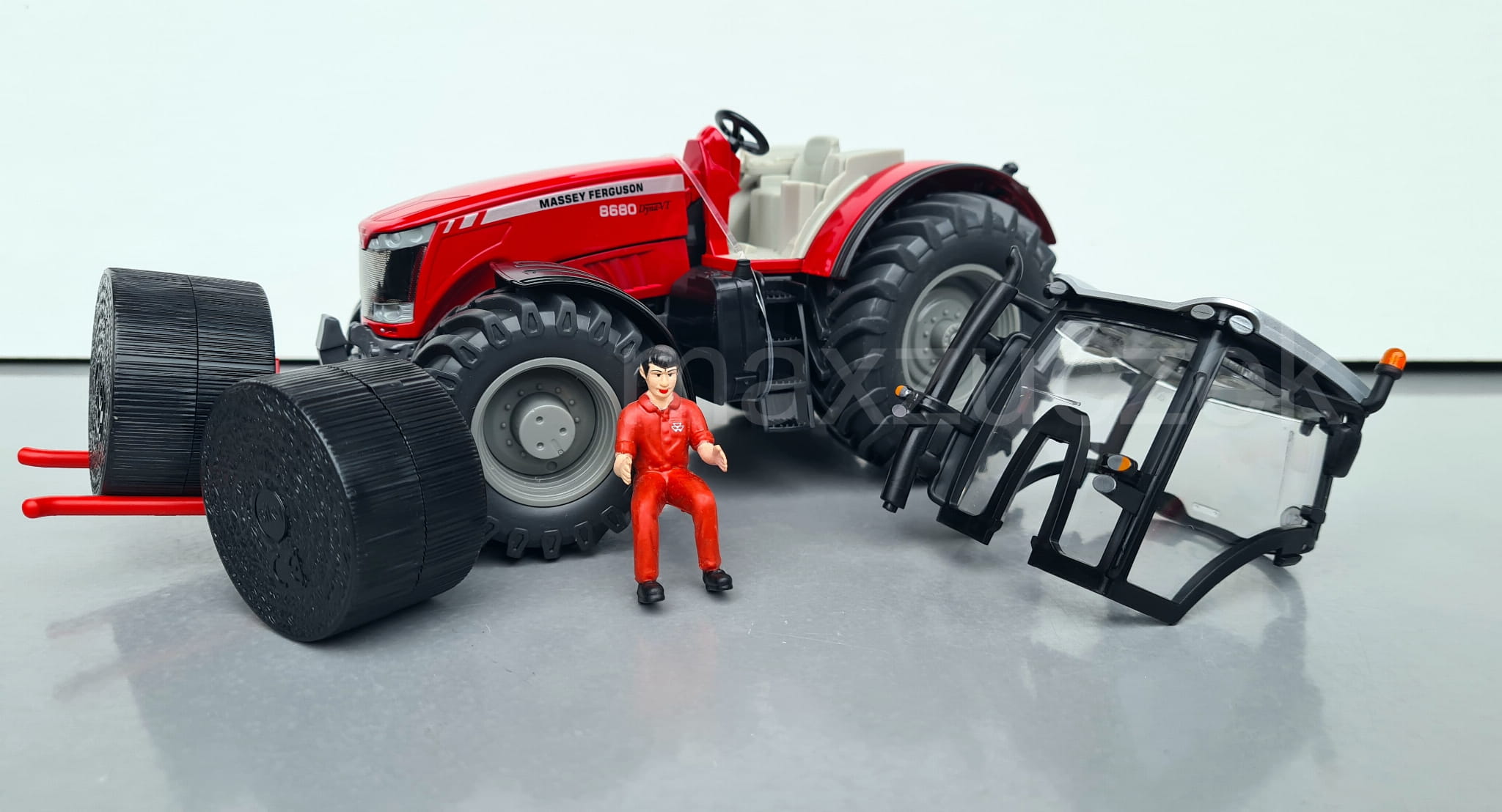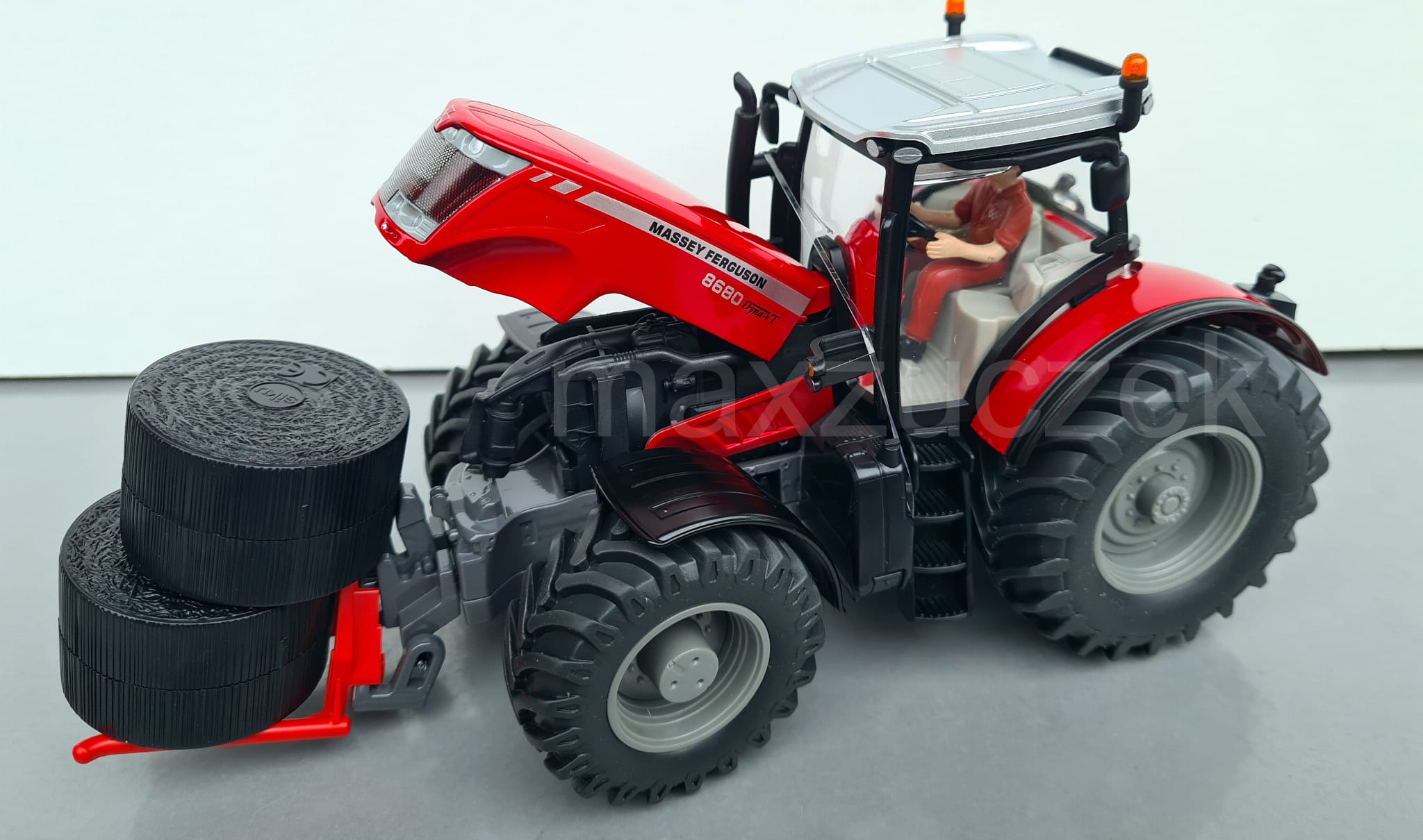 Siku 8614 traktor Massey Ferguson 8680 z widłami do balotów + 2 baloty 1:32