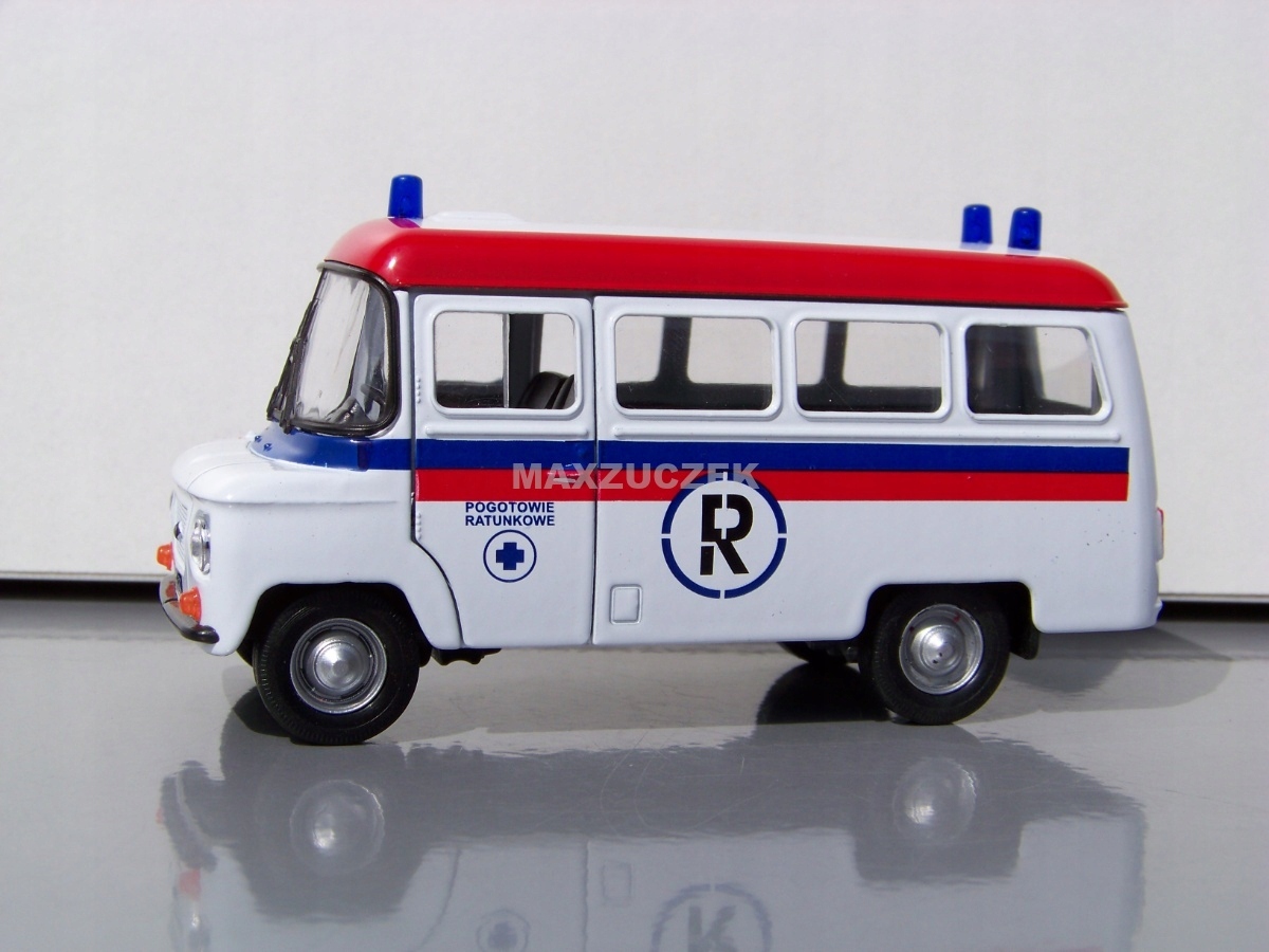 - Model wykonany jest z metalu z dodatkiem plastiku. Posiada otwierane przednie drzwi oraz gumowe opony.